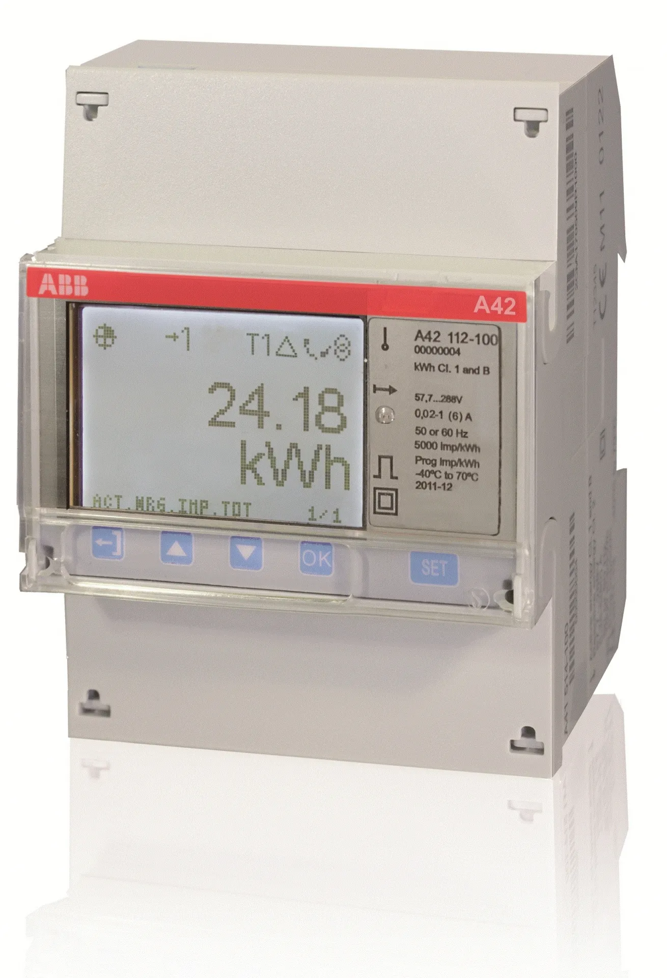 ABB A42 111-100 is a Single Phase (DIN Rail) CT 5A connected meter with the option of a Pulse output/alarm and includes MID certification. It is suited for most of the common applications for reliable and trustworthy metering of energy usage.