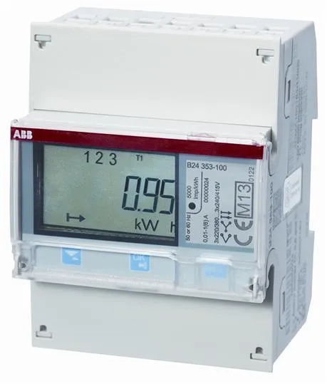 ABB B24 113-100 Three Phase 5A CT Connected meter has Pulse and M-bus output, MID certification, and is mounted on a DIN rail. Due to its compact size and ability to give reliable energy measurements, this meter is suitable for installation in distribution boards and small enclosures such as consumer units.