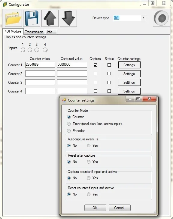 The MOD-4DI has 4 digital inputs with configurable timer/counter option.
