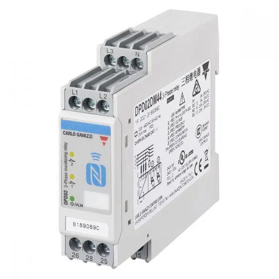 DPD02 is a multifunction 3-phase mains monitoring relay. It operates on 3P and 3P+N systems, monitoring phase loss and phase sequence, overvoltage and under voltage, over and under frequency and voltage asymmetry. Power supply provided by the monitored mains. Several alarm and delay functions can be configured in the unit to provide specific monitoring on voltage and frequency. Through the DPD APP the user can configure the unit at any time or check the device operation status.