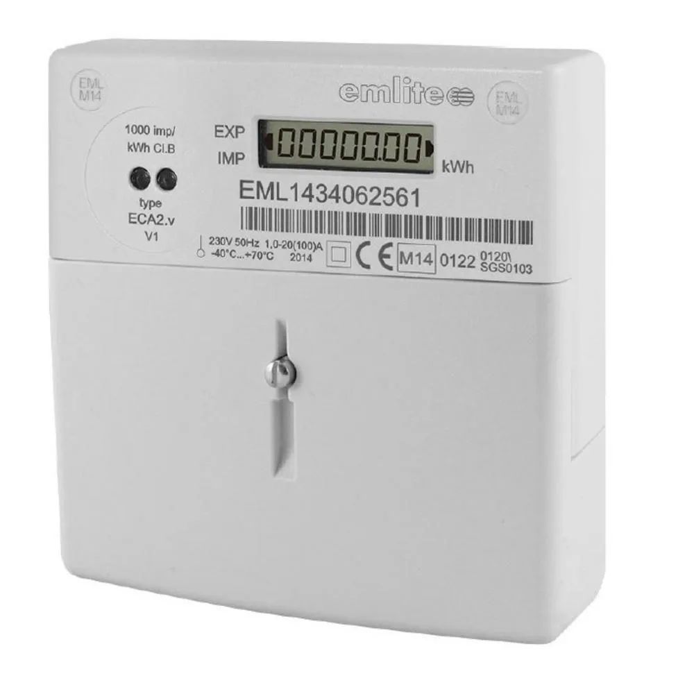 Emlite's ECA2 is a Single Phase 20-100A MID (2004/22/EC) approved meter. It provides measurements of active (kWh) energy with registers shown on a large, easy to read LCD display.