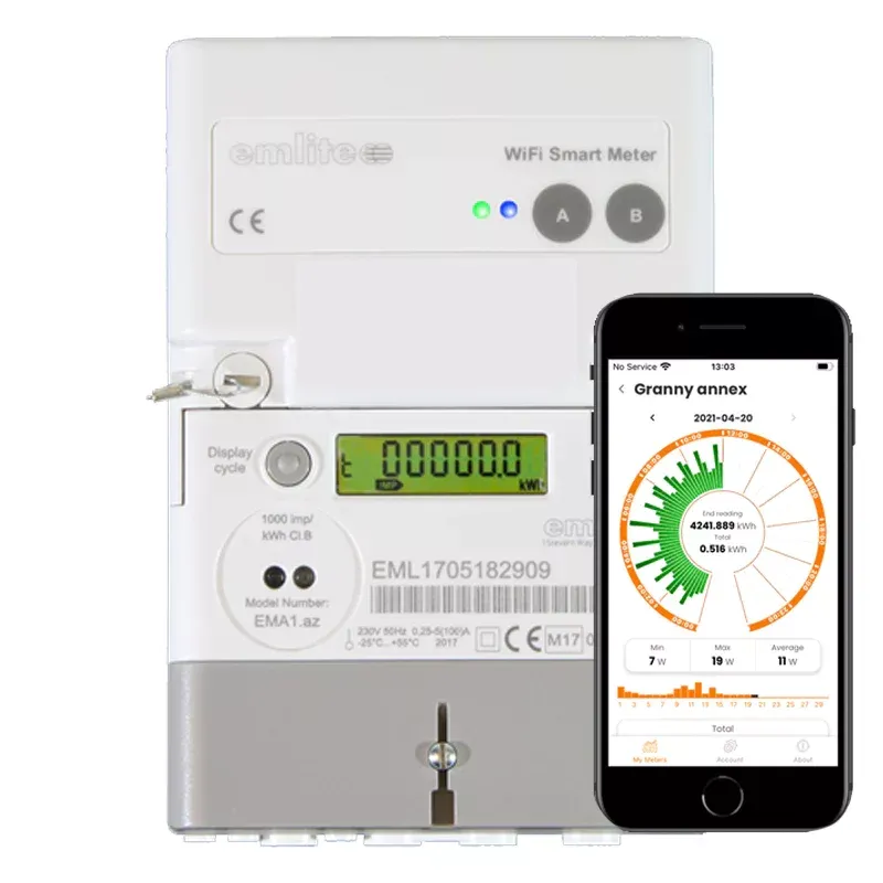 Emlite's EMA1-WIFI is a single phase MID meter with a WiFi communications module, allowing for remote monitoring using a free to use app (available on iOS and Android devices). It provides 15 minute profiling for near real time monitoring.
