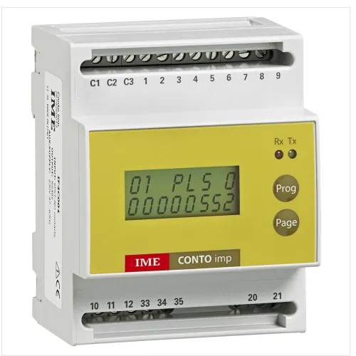 The IF4C001 is a D4 DIN-Rail mounting module designed for use with any device that provides a pulsed signal, such as energy, gas, water and heating meters. Up to 12 devices may be measured in such a way to be communicated to a remote point via RS485 serial link. Pulse input coming from energy, gas, water, heat meters, etc.