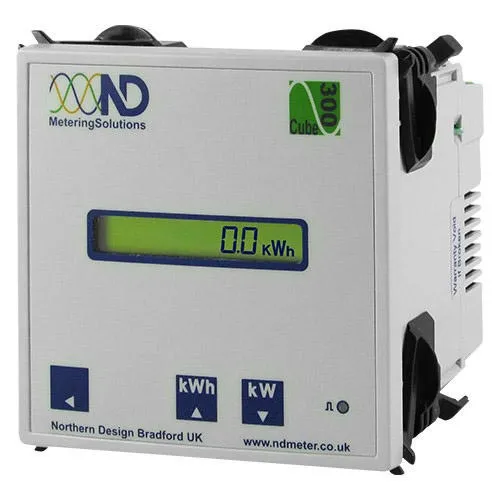 Northern Design's Cube 300 is a cost effective kWh and kW panel mount meter, which has pulsed outputs and accuracy better than class 1. It also features 'Right First Time' installation aids (kW display, CT, VT and Pulse value displays) that clearly show if the meter had been wired and programmed correctly. These features make this meter suitable for control panels and switchboards.