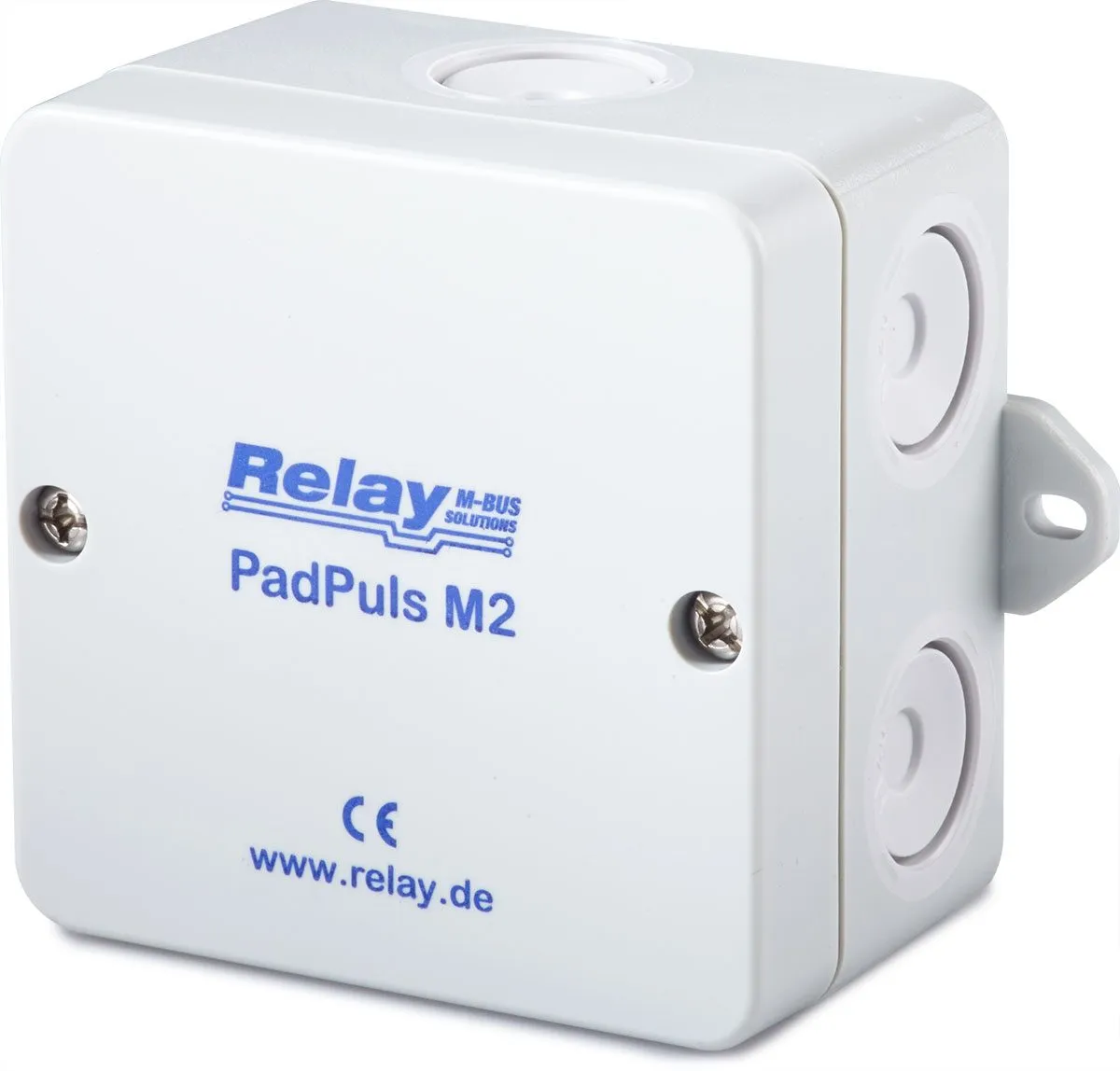 PadPuls M2 adapts up to two impulse meters with floating output (for example gas, water, electricity meter,...) to an M-bus system. Both pulse inputs can individually be configured, acting as two stand alone M-bus slaves. Annual consumption data can be accessed via the implemented clock feature without additional calculation software.