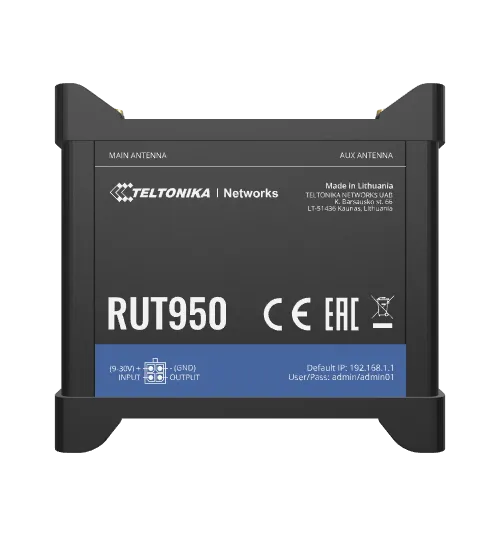 RUT950 is a high-performance industrial 4G LTE Wi-Fi router designed as a Main/Backup internet source and guarantees a reliable internet connection with high data throughput and data redundancy. It is compatible with the Teltonika Networks Remote Management System (RMS) for easy and secure monitoring. It has four Ethernet ports, two external SIM holders, digital I/O, and signal strength status LED indicators. RUT950 is powered by RutOS - a unified operating system for all Teltonika Networks routers, this device is highly secure and customizable.