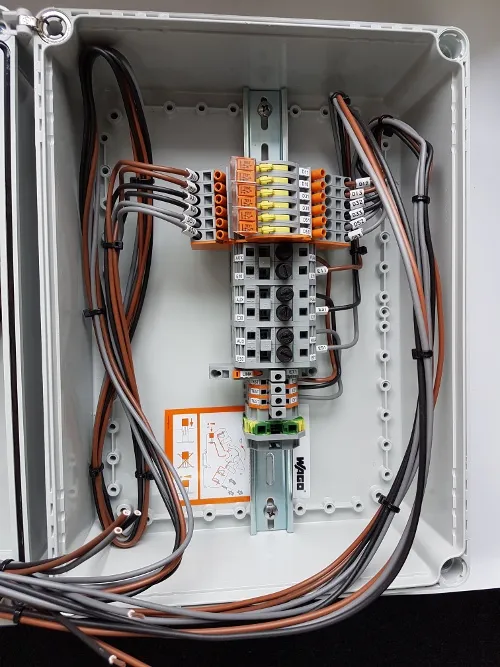 The Wago COP3 HV/LV Enclosure has pre-wired three-phase three-wire terminals that are suitable for a variety of different Main and Check Meters. Surface mount meters are fitted to the front of the unit, and the wires are fed through the front of the enclosure.